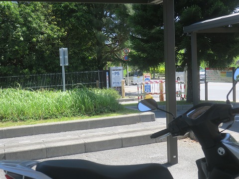14:16 駐輪場に戻る ソフトクリームを食べた後、駐輪場まで戻ってきました。 この炎天下にスクータで来ている猛者がもう一人いましたね。(笑) それでは、那覇に戻りつつお昼が食べられるお店を探しましょう。 (つづく) |