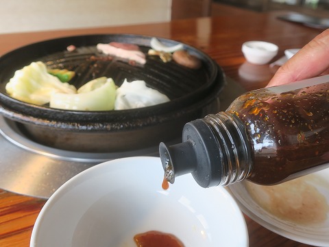 13:33 タレをつけて 生ラムには、テーブルの上にある自家製のタレを付けて。 塩コショウだけで食べても美味しいですよ。 |