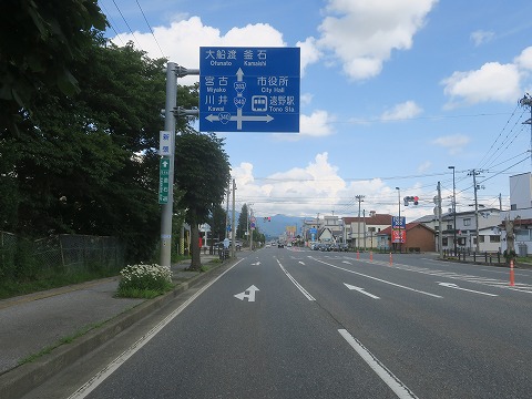 15:58 葛巻町の市街地から 葛巻町の市街地で国道281号線との重複区間に入り1kmほど走り道路看板にしたがい左折、ふたたび国道340号線の単独区間に入り北上を続けます。 雨の心配はなくなりましたね。 後は淡々と八戸を目指すだけです。 |