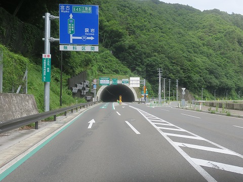 14:17 立丸第二トンネル 以前であれば、途中にある立丸峠(たつまる とうげ)が道路の幅が狭く交通の難所でした。 2011年の東日本大震災を機に、大型車両が通行できるようにと改良を進めました。 現在は峠区間は、2つのトンネルに取って変わりました。 で、写真はそのトンネルの1つ。 峠区間がトンネルに取って変わって、ちょっとだけ退屈になりました。(笑) 旧道の峠道は、廃道にはなってはいないようです。 ただし、途中に集落らしきものもなかったと記憶しているので、生活道路では無くなって路面にコケが生えたり砂が浮いたりして、楽しく走れる区間じゃなくなったんじゃないかなって予想します。 |
