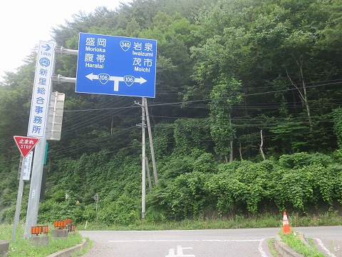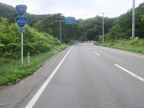 15:19 国道455号線のT字路に 茂市のファミマから国道340号線を北上すること35km弱、国道455号線とのT字路に到着しました。 右に曲がると国道455号線の単独区間で岩泉に向かいます。 自分はそのまま直進して盛岡・葛巻方面を目指します。 |