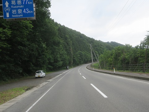 15:29 葛巻町(くずまき ちょう)に向けて 国道340号線に入り途中の葛巻町に向け、国道340号線を北上します。 この区間の国道は全線センターラインのある片側1車線の対面通行の路線です。 もう狭隘な区間はありません。 途中にある国境峠付近は中低速〜中速コーナが組み合わさったワインディング区間ですが、それ以外はたいてい里山となっていて浅めの中速コーナを直線が結んでいる様な区間になります。 相変わらず交通量は少なく走りやすいです。 |