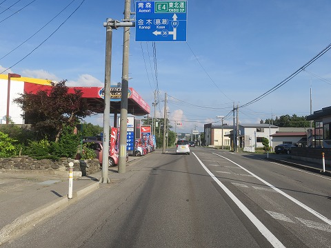 16:40 国道7号線へ 五所川原の市街地から国道101号線を東進して国道7号線との交差点までやってきました。 左角にあったファミマでちょっと休憩して、その後はgoogle 先生の言うことを聞いて、左折して国道7号線に入り青森市方面を目指します。 |