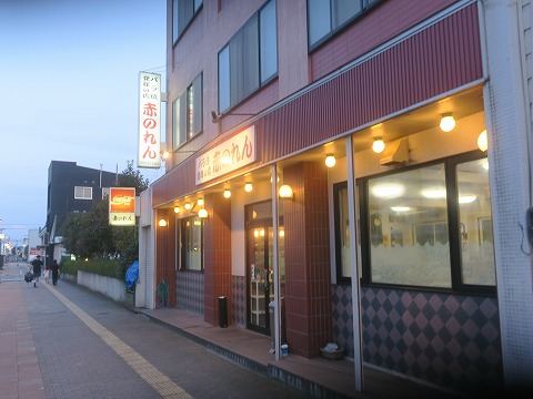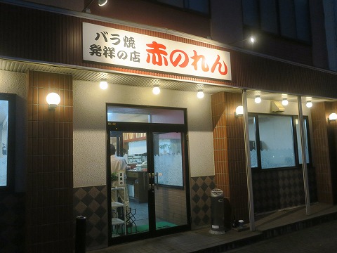 18:59 バラ焼き発祥のお店 風呂はカラスの行水で。 風呂から上がったら、汗も引かないホテルから歩いて1分。 ルートイン ホテルの通りを挟んで左手前にあるお店にやってきました。 お店の名前は”赤のれん”。 ”バラ焼き”発祥のお店と看板に書いてあります。 バラ焼きは、青森県の南部地方のご当地グルメらしいです。 2014年に仕事で三沢に逗留していたときは、ここからちょっと離れた場所に宿泊していたので気が付きませんでした。 その後、ツーリングで訪れるようになって知ったのですが、三沢にくるとまずお寿司を食べに行っちゃうこともあって、訪れるチャンスがありませんでした。 それでは、さっそく入店! |