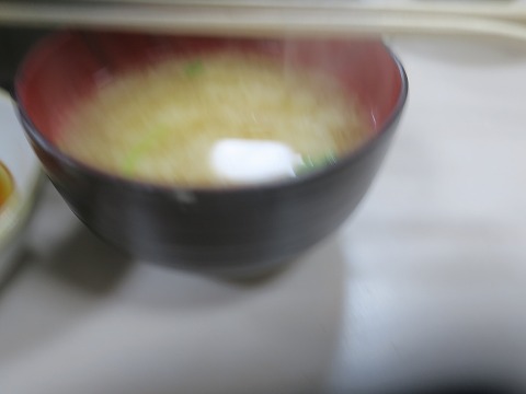 19:06 みそ汁 みそ汁。 とりあえず写真を撮った感が強い。 ボケてるし、フレームに入ってないし。 みそ汁をないがしろにする人は、みそ汁に泣くぞ。 なんて、聞いたことないな。(笑) |