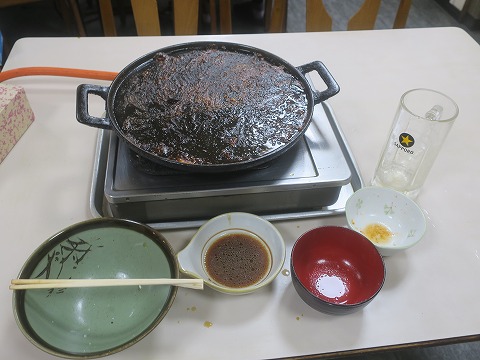 19:11 煮詰まる 鉄板のタレが煮詰まってきて、のんびりしていると段々味が濃くなっていきます。 タマネギにも味が染みてきて、美味し。 |