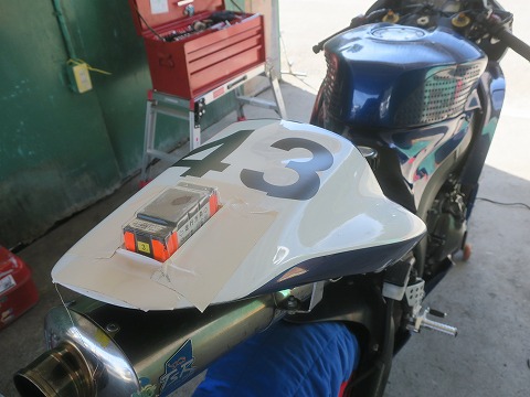 | 模擬レースの走行準備 11時半から模擬レースです。 2本目の走行が終わってピットに戻って、ガソリンを補充。 タイヤウォーマーを巻いて、時間になるのを待ちます。 バタバタしていて、写真撮り忘れちゃった。(^_^;) (つづく) |