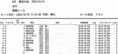 | 2023年10月19日(木) エビスで模擬レース | |||