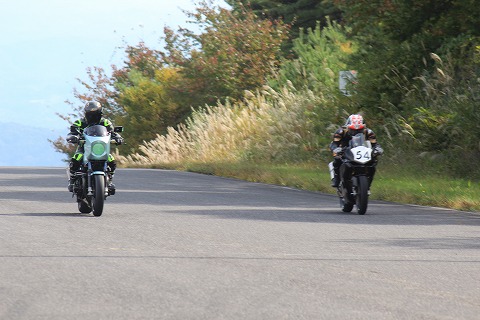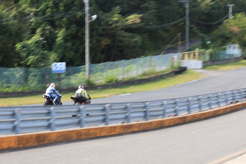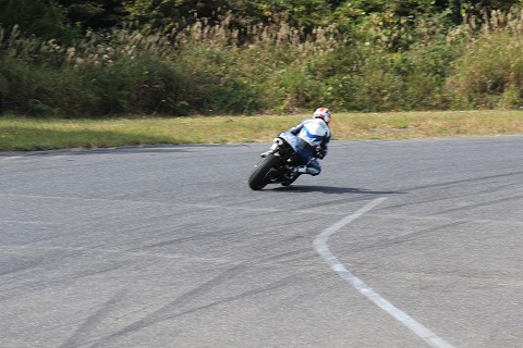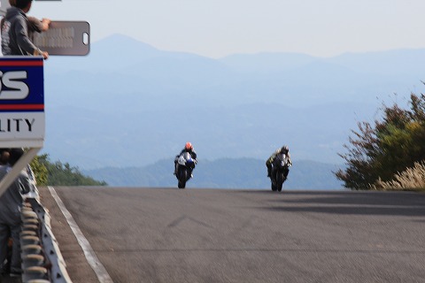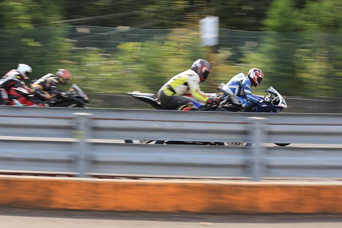 11:36 タンクにヘルメットを 3番手には、グリッド4番手からスタートした国際ライセンス持ちの國川 くん。 (写真右側) バイクはCBRで250ccしか無いんですが、流石です。 そしてストレートでのこの伏身。 タンクにヘルメットのアゴがつくぐらい伏せてます。 これがやっぱり国際ライセンス持ち。 見習わないとね。 |