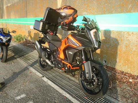 7:05 待ち合わせは MAOHさんとの待ち合わせは、ここ六ツ川本線料金所。 待ち合わせ時間は7時だったんだ。 けど、5分ほど遅れちゃったね。 すまんかった。 で、MAOHさん、バイク買い換えました。 おニューのバイクはKTMの1290 SUPER ADVENTURE。 KTMのADVENTUREモデルから同じKTMのADVENTUREモデルへの乗り換えです。 新車、いいなぁ~。 |