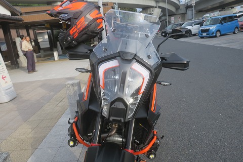 7:48 厚木PAで 圏央道に入り、厚木PAでトイレ休憩。 新しいKTMはフロントフェイスが昆虫っぽいですね。 バックミラーで見ると、一発でこのKTMだってわかります。 |