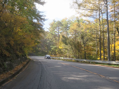 10:20 国道152号線で杖突峠(つえつき とうげ)へ 諏訪インター近くでガソリンを入れたら、国道152号線で浜松方面へ。 この区間の国道152号線は、標高1,247mの杖突峠に向けてご機嫌なワインディングロードが続きます。 諏訪から先高遠の市街地まで全線センターラインのある片側1車線の対面通行の国道です。 先の杖突峠までは上り勾配の中低速コーナーが連続します。 今の時期、例年より少し遅めの黄色に色づいた葉が綺麗です。 |