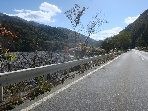 12:16 三遠南信自動車道で 県道22号松川大鹿線を西走、その後県道59松川インター大鹿線に入り西走を続けます。 いつだったか県道59号線を走った時、沿線の小渋湖の紅葉が見事だったんですよね。 今日も見られるかと思ったら、道路の改良が進んだのかな。 トンネル区間が多くなって小渋湖はほとんど見ることなく、パスしてしまいました。 その後、県道59号線からその後国道153号線に入り一旦南下しました。 国道153号線はこの区間、道路の両側に民家が建ち並ぶ市街地を走る国道です。 交通はそこそこ流れているものの、ツーリング ルートとしては少々退屈です。 やはり早期に国道153号線が復旧すれば良いなと思います。 その後は国道153号線で喬木村(たかぎ むら)まで南下し左折して県道251号線に入り、今度は東進。 ちょうどカタカナの”コ”の字の様なルートを走り、三遠南信道までやってきました。 この先の県道251号線も災害復旧工事で通行止めです。 三遠南信道路の無料区間を走って、上村まで一気に進みます。 |