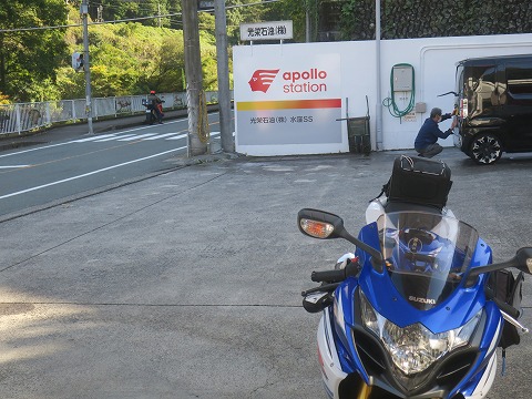 17:29 給油3回目 国道362号線を南下し、国道1号線バイパスと交差したら、国道1号線へ。 安倍川を渡り、ちょっと裏に入って、高速に上がる前に今日3回目のガソリンを給油します。 5時を過ぎて、すっかり暗くなっちゃいました。 暗くなる前に山を下りられて、よかったです。 最近は加齢が進んで、暗くなると視力の衰えが酷いです。 MAOHさんもここで2回目の給油をします。 KTMのADVENTUREは足が長いですね。 |