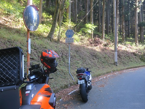 県道389号線は 今走ってきた県道389号線は、スタートの水窪町の交差点で標高250mくらい、途中の山住峠が1,066m、国道362号線との交差点で180mくらいなので、そこそこの標高差があります。 また、ほぼ全線センターラインが無い狭隘な路線です。 路面には山からこぶし大よりも小さいですが転石があったり、路面には山から出水している箇所があったり、砂が浮いていたりするところがある所謂険道です。 オンロードのバイクで走るのはちょっとタフな路線です。 |
