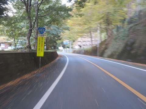 14:13 県道389号線は 県道389号線に入り、途中にある山住峠を目指し一旦東進します。 県道389号線は最初はセンターラインのある片側1車線の対面通行の県道ですが、センターラインはすぐになくなります。(笑) この先、ほぼ全線センターラインはない1.5車線、狭いところでは普通のクルマとバイクがようやく離合できるくらいの道幅しかない区間もあります。 |