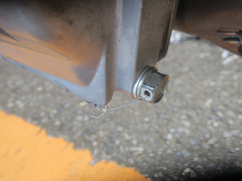 オイルを入れたら、ドレンボルトをワイヤリング。