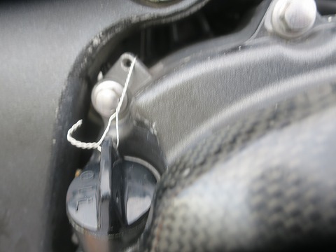 オイルレベルを確認したら、フィラーキャップにもワイヤーロック。