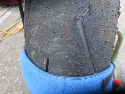 走行前のタイヤの写真を撮るの忘れてたので、直前に写真を撮る。(笑)