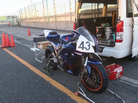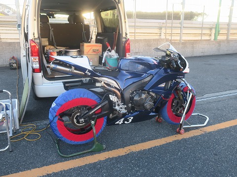 6:52 寒さ対策の 今日1本目の走行は9時15分から。 11月に入り寒くなってきたので、きっちりタイヤは温めておきたいところです。 寒さ対策用に普段は使わないブランケットを巻いて盤石の体制をしてみたりして。 |