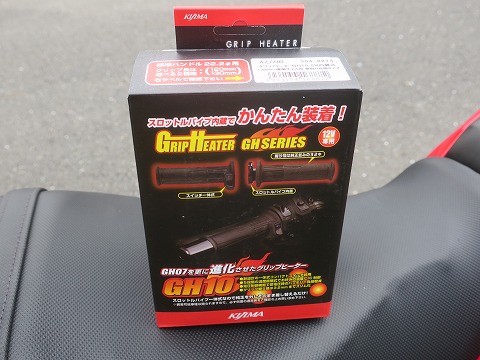 14:33 グリップヒーターを それなので、手の寒さ対策としては一番の”グリップヒーター”。 ネットで購入。 バイクパーツの大手KIJIMA製でございます。 機種はGH-10と言うタイプで、スイッチが左ハンドルのグリップに一体になっている機種です。 |