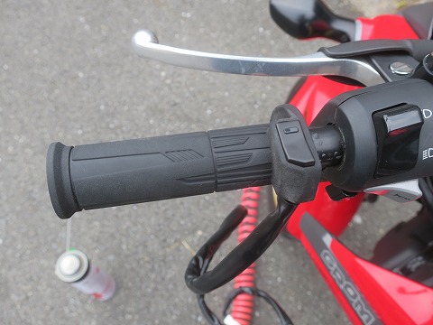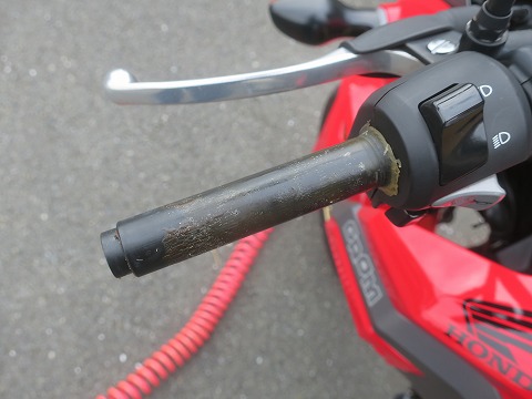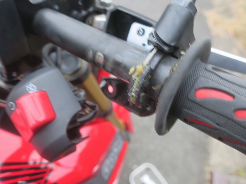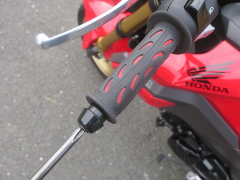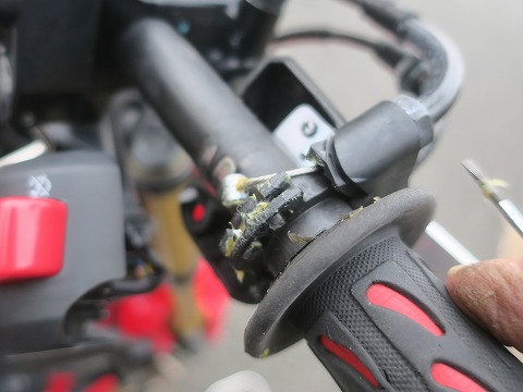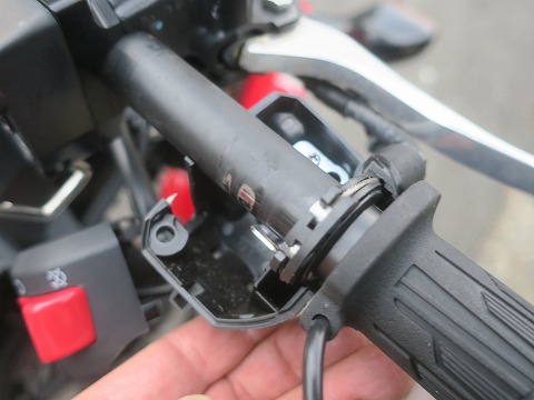 15:35 今度は右側 今度は右側。 左側のグリップで格闘したことを考えると、右側は・・・・。 「大丈夫です。」 右側はアクセルホルダーと一体なので、押し込む必要はありませんから。 |