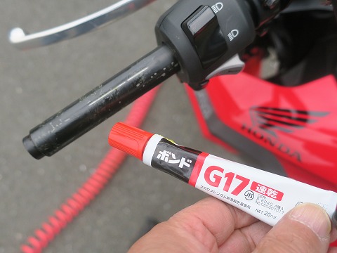15:03 G17を グリップを取り付ける前に定番の接着材”G17”を塗ります。 |