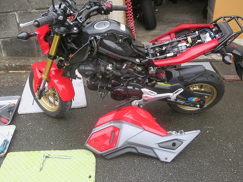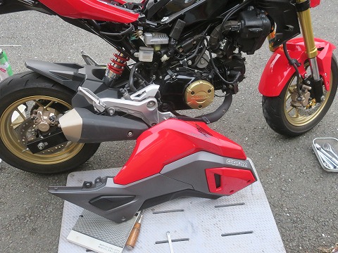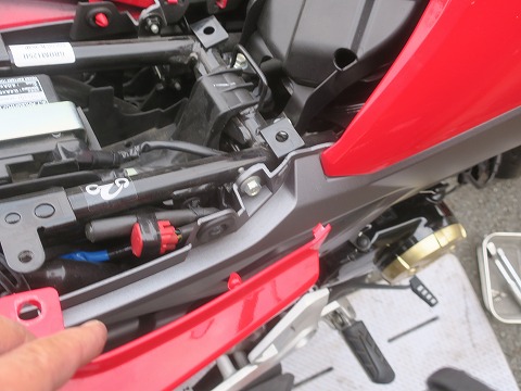 11:33 取付けと動作確認 グリプヒータの取付と動作の確認が終わったので、外したシェラウドとかを元に戻していきます。 まずは左側のシェラウドから。 |