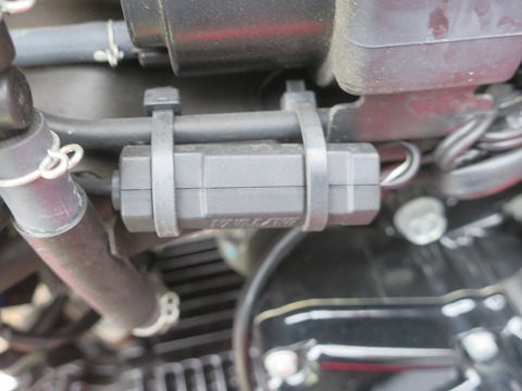 10:17 たどっていくと 電線をたどっていくと、ブラックボックスがありました。 箱には”DAYTONAE”の名前があるので、社外品ですね。 前のオーナーが取り付けた物でしょう。 中を開けてみましたが、よく分からない基板が入っていたので、これよりも上流でグリップヒーターの電源は取った方がよさそうです。 で、何だかんだで、このブラックボックスの上流のコネクターの所から電源を取りました。 (写真は忘れたよ)(笑) |