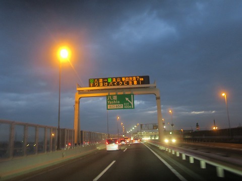 6:24 事故渋滞だ 「あちゃ〜。 この先で事故渋滞だ。(汗)」 たまにあるんですよね。 この先の三郷から先って、並行して走っている高速が無いので、事故があると結構悲惨な渋滞になっちゃいます。 さて、一般道に下りるか否か。 (-_-;) たぶん、交通量はそれほど多くないから、渋滞していてもそれなりに流れそう。 高速道路上でガンバルことにします。 |