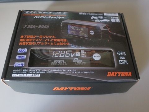 12月23日(土) 13:49 バッテリーチャージャが届く と、色々と購入理由を並べ、自分の中で散財を正当化したら、Amazonでポチる。 クリスマス前の週末、届きました。 自分へのクリスマス プレゼント と言うことで。 さらに正当化。(爆) 購入したのは、バイクの用品メーカーで有名な”DAYTONA”製です。 |
