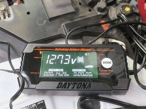 17:35 ちょっと弱ってる 充電器をつなぐと、電圧は 12.58V。 やっぱりちょっと弱ってるのかな。 |