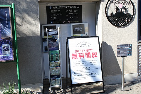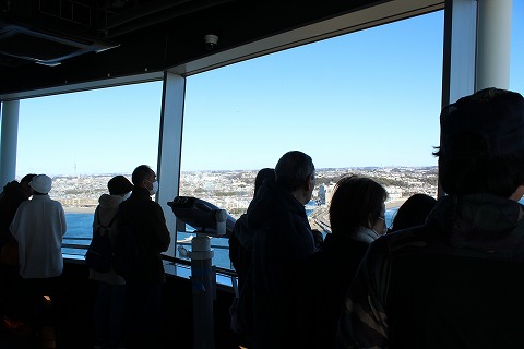 11:49 サンセットテラスに エレベータでサーっと上がりました。 上部にあるこの展望台は”サンセットテラス”って名前らしいです。 たくさんの人がいますね。 |