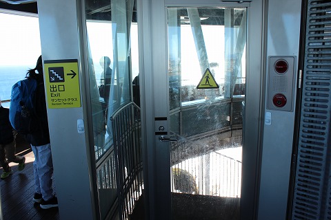 11:45 エレベータで それでは昇ります。 エレベータあり。 60mの高さを「階段で登れ。」って言うのは、観光施設としてはちょっと無理があるからね。 昇塔券 500円。 海上保安庁管轄の参観灯台の寄付金300円よりちょっとお高め。 参観灯台にはエレベータが無いからね、その分が200円か?(笑) |