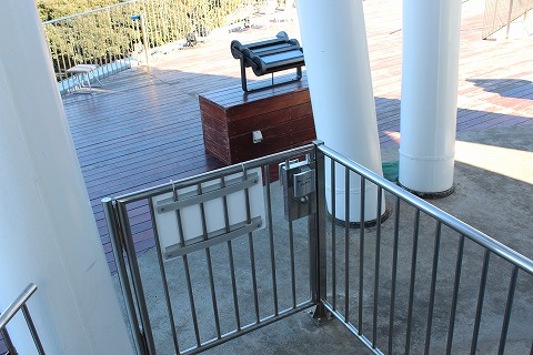 11:58 降りる 10分弱、吹きっさらしの展望台に居て、体が冷えまくり。 寒いので降りますよ。 下りもエレベータは使えますが、下りは階段も使えます。 登りは階段は使えないんですよね。 一方通行。 せっかくなので、階段で降ります。 |