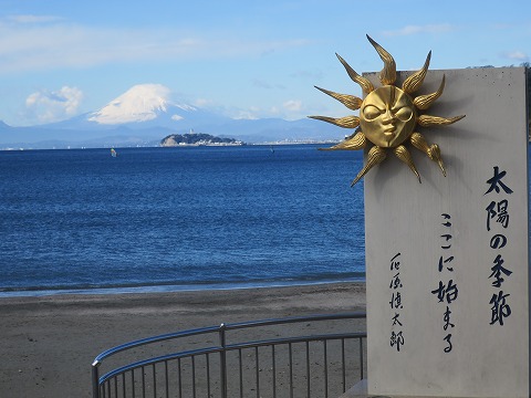 10:33 退屈しのぎに 今年の正月休みは、12月29日(金)からでした 成人の日は1月8日の月曜日。 年明けの1月5日が金曜日なので、5日(金)が休みになって、11連休になりました。 就業中では、たぶん最長。 (離職中はもっと長い。(笑)) そんな正月休みも後半に入った1月4日(木)、退屈しのぎにGROMでぷらっと出かけてみました。 そして、ここは元旦のパトロールでも訪れた逗子海岸、”太陽の季節”の記念碑前。 相模湾を挟んで、江の島とその向こうに富士山を見ることができます。 |