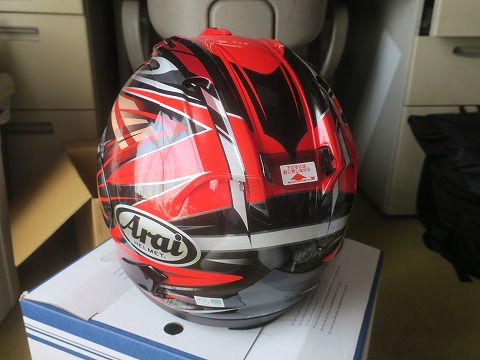 11:33 ヘルメットを新調 早速開梱。 ヘルメット新調しました。 買ったのは、アライヘルメットの RX7X でグラフィックモデルの”RADICAL(赤)”というのを。 |