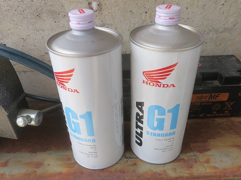 11:35 オイルを準備 オイル交換時に必要な量は、0.9L。 一缶でちょっと余る。少しだけ余る。 なので、前回交換した分が少しだけ余っている訳で。 必要量が1.1Lで、少し足らないよりイイけどね。 これで10回くらい交換すると、1回分になると言う話。 オイルは、推奨のHONDA ULTRA G1(5W-30) 2年ほど前に缶のデザインが変わったんだけど、缶をよく見ると、その時にULTRA G1の粘度も 10W-30 から5W-30 に変わったんですよね。 |