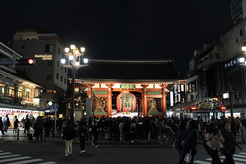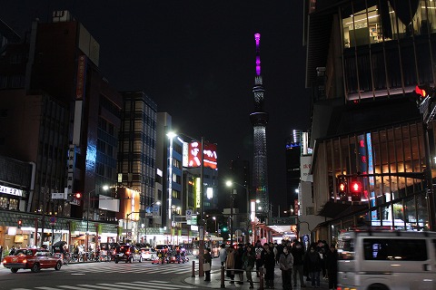17:16 浅草駅に 去年から拠点が横須賀の自宅になったので、京急〜都営浅草線で浅草駅へ。 浅草駅からまずは浅草寺の南側になる雷門に向かいます。 雷門の交差点で信号待ち。 右手に紫色にライトアップされたスカイツリー。 ところで、いつまで初詣って言うのかな? と疑問に思ったので、調べて見たら”松の内”(7日)までを一般的に初詣と言うらしいです。 ギリギリ セーフ。(笑) |