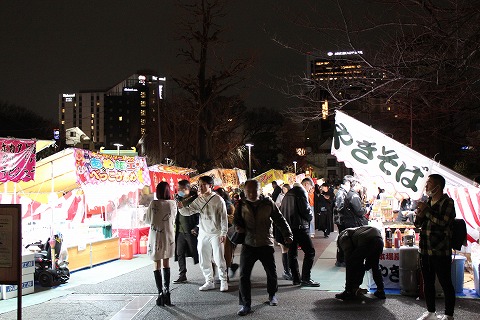 17:32 露店で賑わう おみくじも引いたので、西参道方向に行きます。 境内では、たくさんの露店で賑わっています。 例年だと、5日くらいには撤収しちゃった様に記憶していますが、今年のカレンダーは露天商には良い日巡りだったみたいです。 |