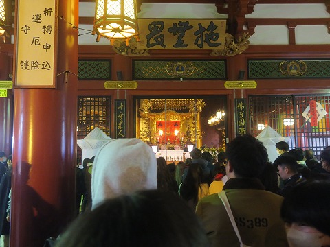 17:23 境内は 境内に入りました。 ホント、ここまで賑わっているのは数年ぶり。 歩きづらし。 逆に正月の浅草寺は混んでないと、ピンときませんが・・・。 |