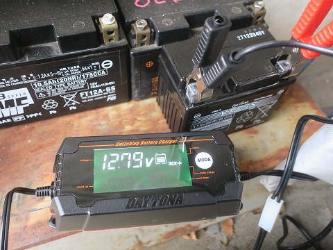 13:59 新品だけど 新品のバッテリーでも、使い初めに30分くらいでいいので充電してやると良いらしい。と書いてあったような。ないような。 毒にはならないみたいなので、ちょっと充電してみることにします。 電圧を確認すると、12.79Vあるので、当然そのままでも使えますが。 なんか新旧バッテリーばっかり集まってきちゃいましたねぇ。 |