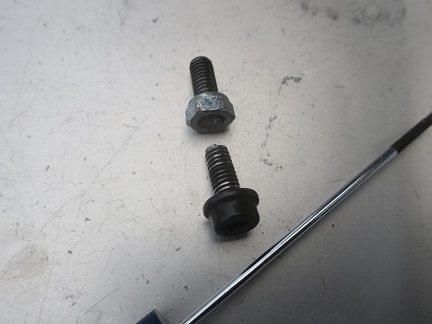 ベースを固定しているボルト。 折れちゃいました。 (-_-;) ベースのプレートは位置決めのピンとかなくて、締め込んで固定する仕組みで、締めがあまいと走っていてズレる可能性もあるので、ついつい締め過ぎちゃうんですよね。 とりあえず、余っていたボルトを探して締めておきましたけど・・・。 今度、ホームセンター辺りでも売っていて、少し強度のあるステンレス製のボルトにでもしておこうかな。 |