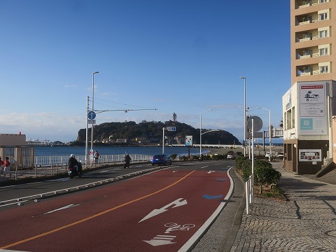 8:51 江ノ島灯台は ファミマでコーヒーを買って、待っている間、表通りに出て正月に訪れた江ノ島を眺めてみる。 江ノ島灯台は今日も健在です。 |