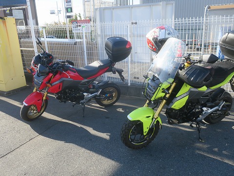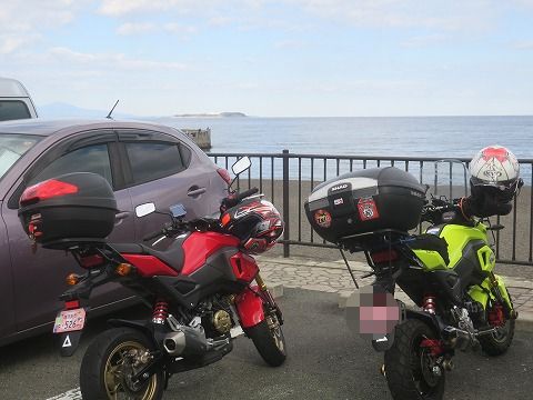 8:59 到着 9時ちょっと前にMAOHさん到着。 「おはようさんです」 GROM、2台そろいました。 でも、カラーリングも違うし、履いているタイヤとか、装備が違うので、違うバイク見えたりします。 それでは、出発。 ルートは国道134号~国道1号線、小田原から先は国道135号線で東伊豆の海沿いをずーっと走って、昼は伊東かな。 |