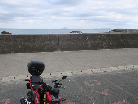 14:35 伊豆七島が 城ヶ崎で昼食を食べた後、国道135号線に出て南下。 下田を過ぎて、田牛の交差点から名無しの道路に入り海岸線へ。 サンドスキー場と龍宮窟を観ようと訪れたけど、周辺は有料駐車場だらけ。 しかもバイクも普通車と同じ500円。 ちょっと駐めたいだけなのに500円は同意できませんねぇ。 と言うことで、観光をやめて離れた場所にバイクを駐めてトイレ休憩。 沖に見えるのは、調べてみたら伊豆七島の1つ利島(としま)。 そしてやや右側に見えるのは新島(にいじま)みたい。 伊豆半島の南まで下りてくると、見ることができるんですね。 |
