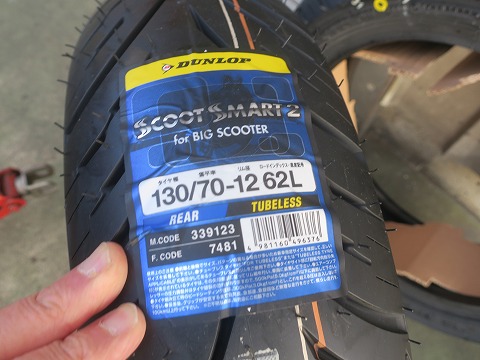 16:36 新しいタイヤは 頼んでおいたタイヤはDUNLOPのハイグリップタイヤじゃない方。 交換するタイヤはSCOOT SMART2。 今の使い方は仕事の行き来がメインで、ほとんど直線ばかり、ハイグリップタイヤじゃ勿体ないので、ロングライフ重視で。 仕事の行き来だけで、大体週に100kmくらい。 年間にすると 5,000kmくらい走る計算になります。 |