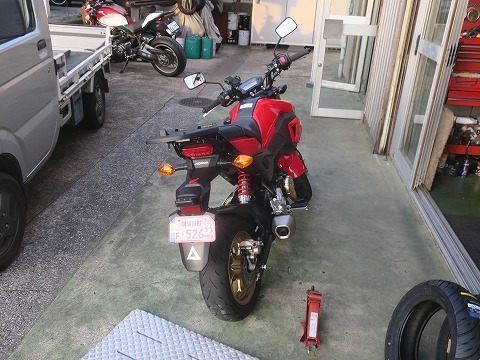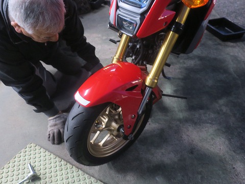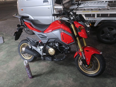 17:32 作業性を 外した。 作業性を考えると、レーシングスタンドを使いたい所だけど、専用に準備しないとダメですからね。 GROM線用にレーシングスタンドを準備するほど、お金が回りません。 (-_-;) |