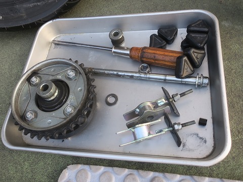 17:06 汚れていたので アイスエイジさんがタイヤ交換をしている間、自分は汚れていたスプロケットをバラしたついでに掃除しちゃいましょう。 まあまあ、きれいになって気持ちよしす。 リヤのタイヤを交換したタイミングで、組み込みます。 サイドスタンドで傾いたままリヤタイヤを取り付けるのは、とってもやりにくいですね。 無理に力入れると、スタンドが外れて倒れちゃいそうですから。 自分一人じゃ無理だな。(笑) |