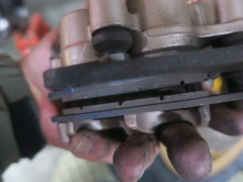 17:51 ブレーキパッドを タイヤを交換している間にブレーキパッドの残量を確認。 まだ、あるけど、それなりに減ってきてますね。 ブレーキのピストンの掃除をしたい気分だけど、今日は時間が無い。と言うより辺りは暗くなってきたので、次回だな。 指汚いな。(笑) タイヤの入れ替えが終わったみたいなので、車体に付けちゃいましょう。 |